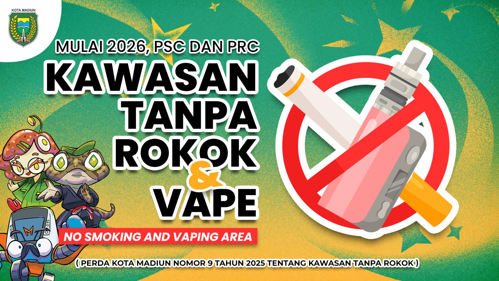 Mulai 1 Januari 2026, Pemkot Madiun menerapkan kebijakan melarang merokok (termasuk rokok elektronik) di kawasan Pahlawan Street Center (PSC) dan Pahlawan Religi Center (PRC). Kebijakan ini untuk mewujudkan lingkungan yang sehat dan mendukung penerapan kawasan bebas asap rokok di area publik.